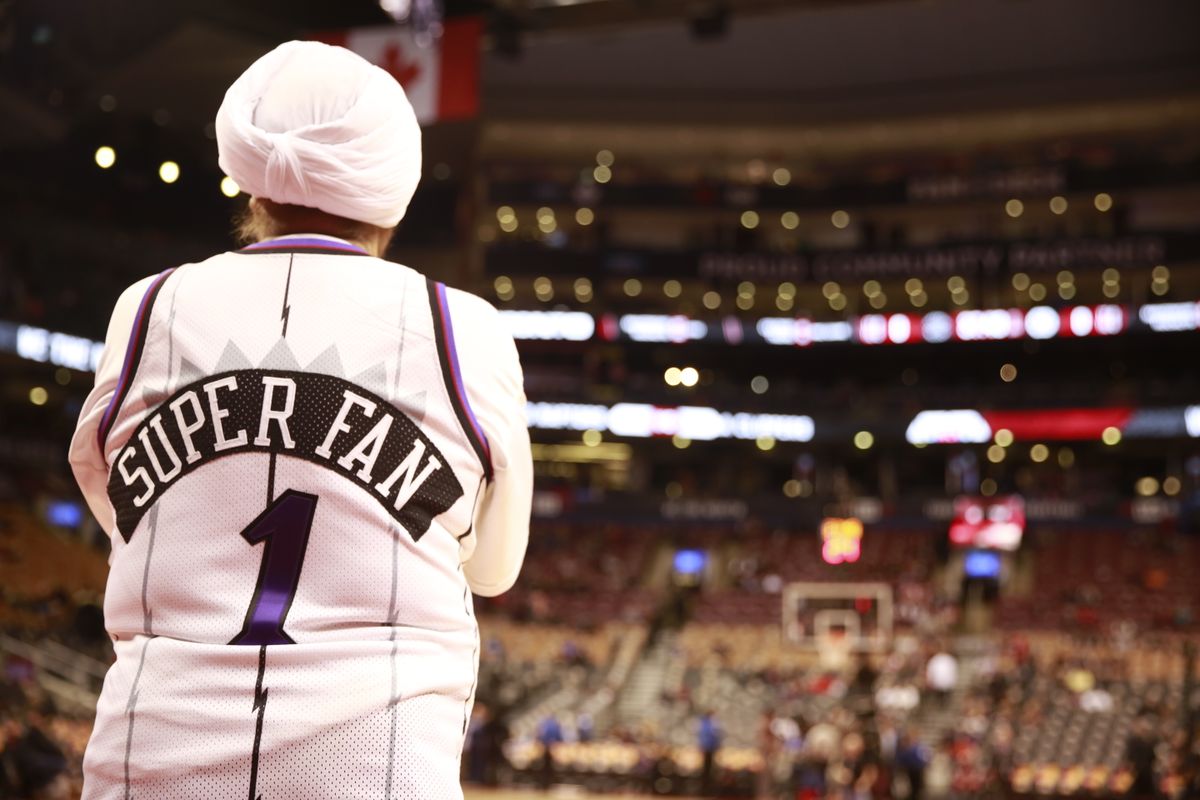 Bene, questo signore tarchiato si chiama Nav Bhata. Dalla fondazione della squadra nel 1995, ha seguito le oltre 900 partite casalinghe dei Raptors, senza mai perdersene una.